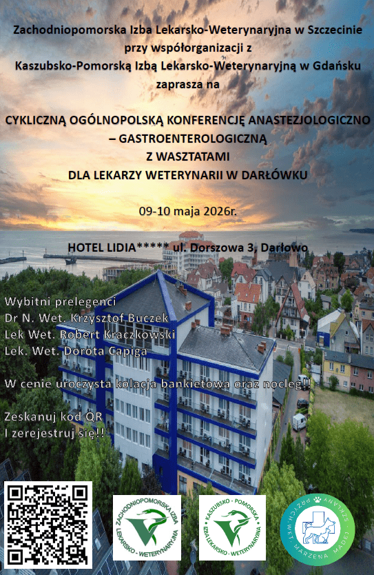 Konferencji Anastezjologiczno – Gastroenterologicznej wraz z Warsztatami Klinicznymi w Darłówku” na temat „Anastezjologia oraz endoskopia przewodu pokarmowego psów i kotów od teorii do codziennej praktyki